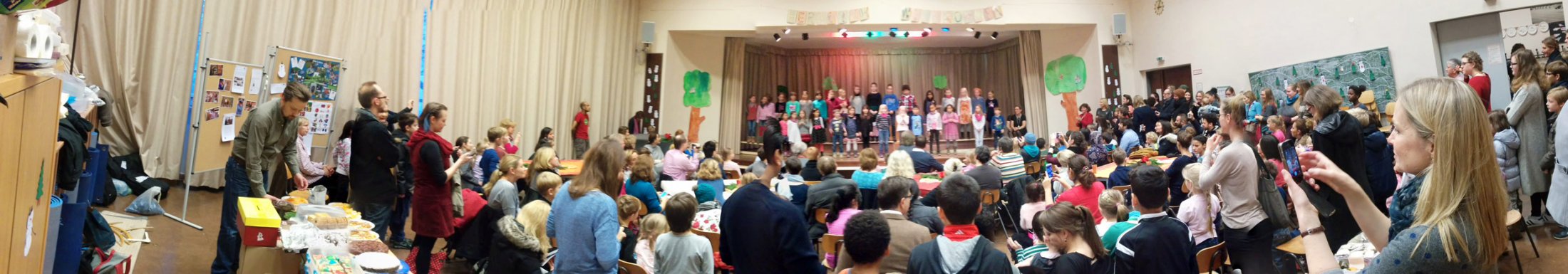 Hier ein Panoramabild aus der Aula von der schönen Weihnachtsfeier, die am Freitag, den 4.12.2015 bei uns in der Schule und den beteiligten Klassen mit zahlreichen “weihnachtlichen” Angeboten statt gefunden hat.